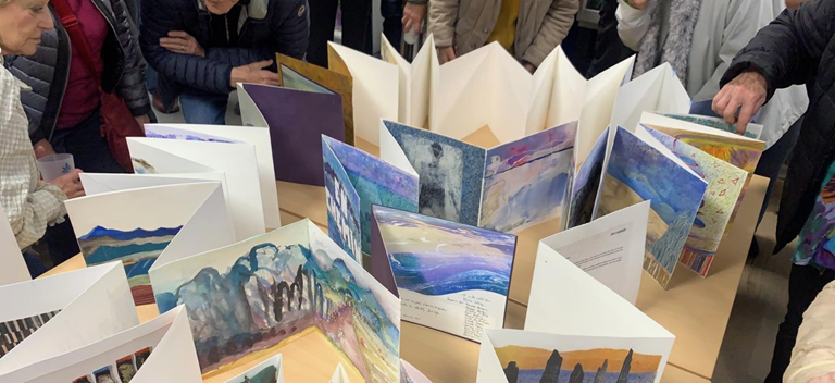 Quatorze membres de l’association ont élaboré des livres accordéon (appelés « leporellos ») originaux, autour du thème « En chemin »